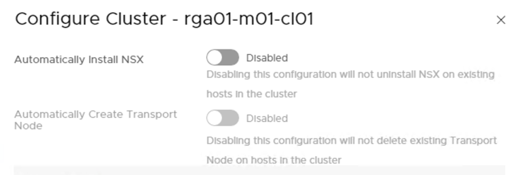 Managing installation on the cluster level allows for automatic creation of transport nodes as well. I’m a huge fan of automating so I enable this one too: