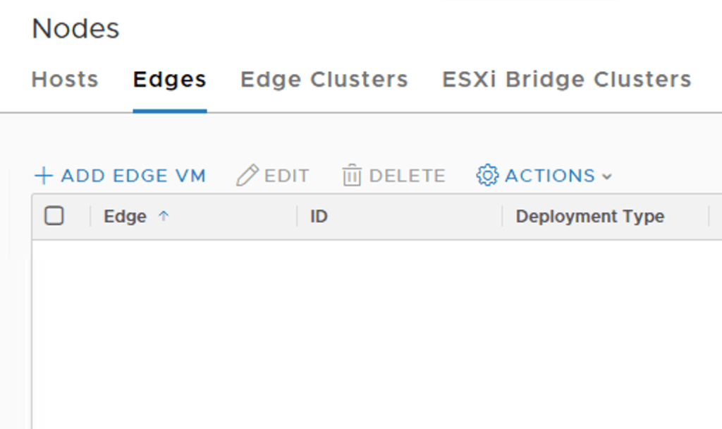 Next, in NSX Manager I navigate to Fabric > Nodes and click on the “Edges” tab: