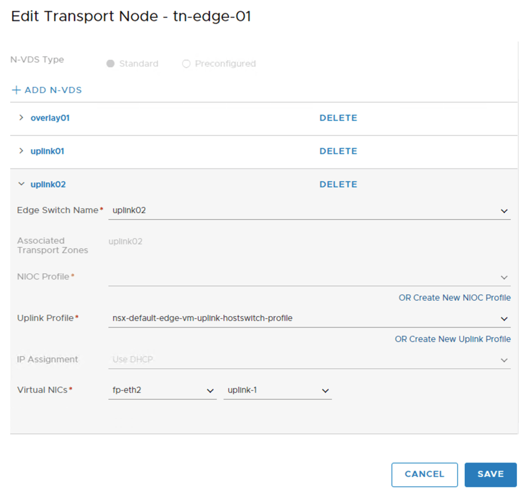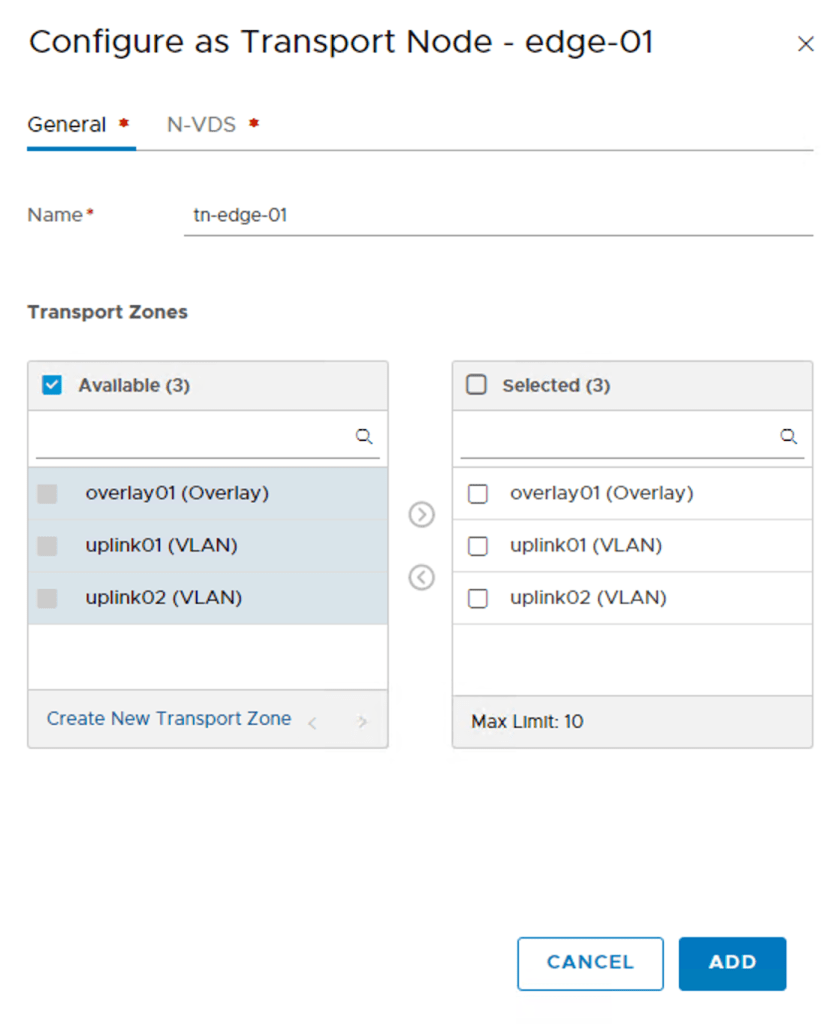 I repeat the above steps to configure the second edge “edge-02” as transport node “tn-edge-02”.
