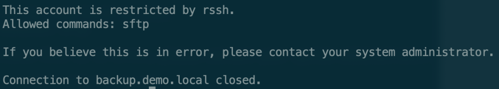 To verify that the rssh restriction is working for the service account you can try to login with SSH: