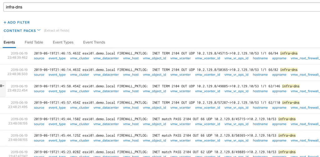 For this short article I’m using NSX-T 2.4.1 and vRealize Log Insight 4.8. vRealize Log Insight has been configured as the syslog target within NSX-T and on the ESXi hosts.