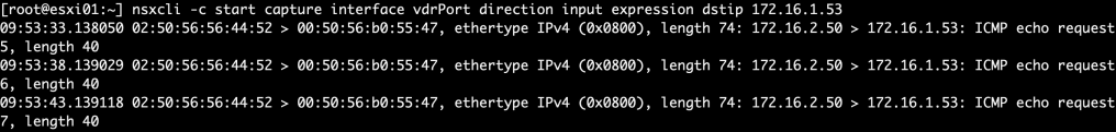 nsxcli -c start capture interface vdrPort direction input expression dstip 172.16.1.53
