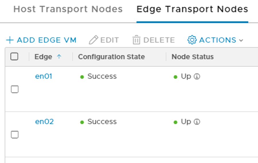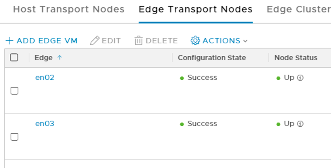 The edge transport nodes configuration state and node status are looking good.