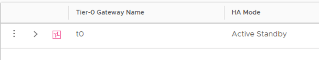 Lastly, the Tier 0 gateway in this lab has been set up with an Active-Standby HA mode.