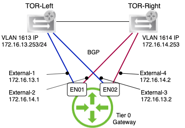 At this point en01 and en02 are the only Edge transport nodes with logical network configuration linked to them. While en03 and en04 are members of the same Edge cluster, they are not doing much in terms of data plane services.