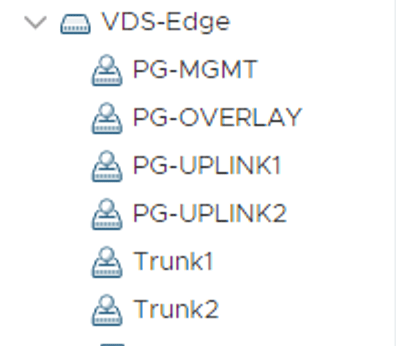I’m using my 2.5 Edge VM design diagram above as a blueprint and the first thing that I need to do is create two new port groups on the vSphere VDS. The Edge VM design requires two port groups configured as trunks. I will call these port groups Trunk1 and Trunk2.