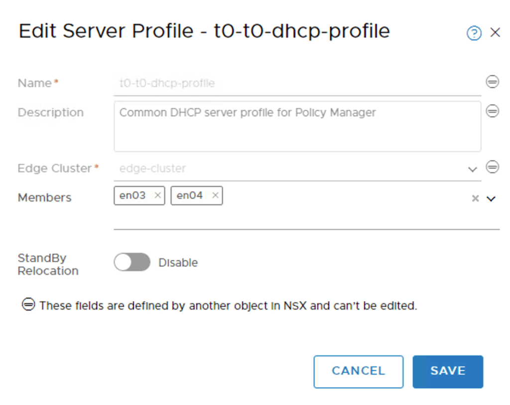 I have to re-configure the DHCP service so that it uses the new Edge transport nodes. This is done under Advanced Networking & Security > Networking > DHCP > Server Profiles