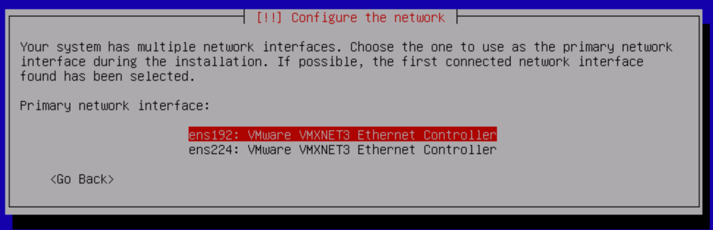 At this point we only assign a static IP address to the ens192 interface.