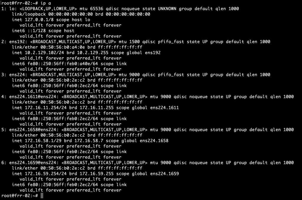 | ens224.1658 | 172.16.58.1/29 | BGP peering VLAN |