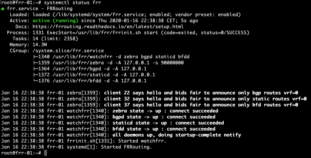systemctl restart frr systemctl status frr