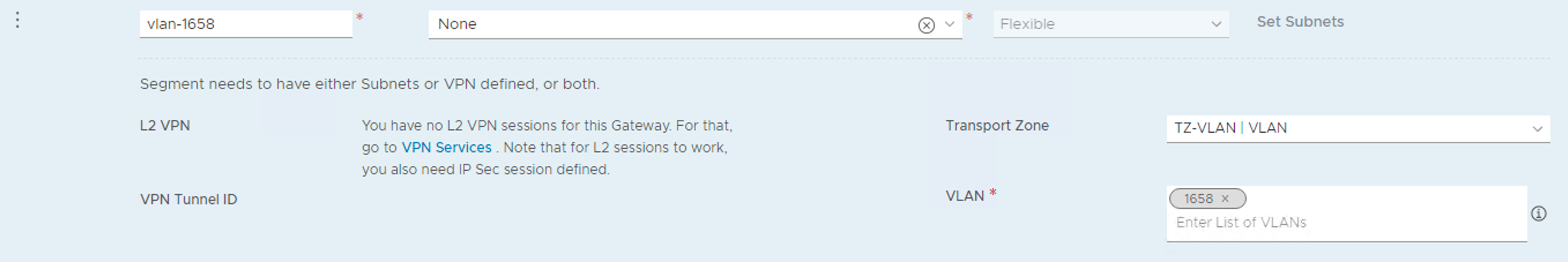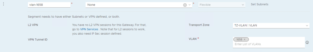 Creating the “vlan-1658” segment: