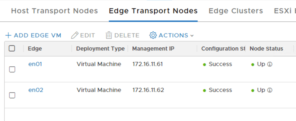 | Name | IP address | Segment | Edge Node |