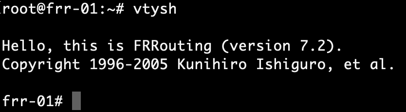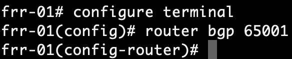 Configuration of BGP in FRRouting can be done by editing configuration files directly or through VTY shell which is FRRouting’s CLI frontend. We’ll use VTY shell today.
