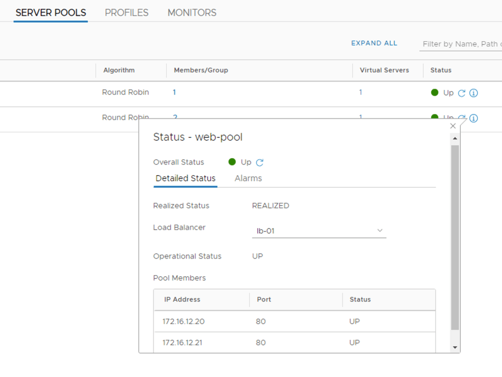 Recently somebody asked me if it was possible to see the current status for individual NSX-T load balancer server pool members. This information is indeed available in the NSX Manager simplified UI as you can see below: