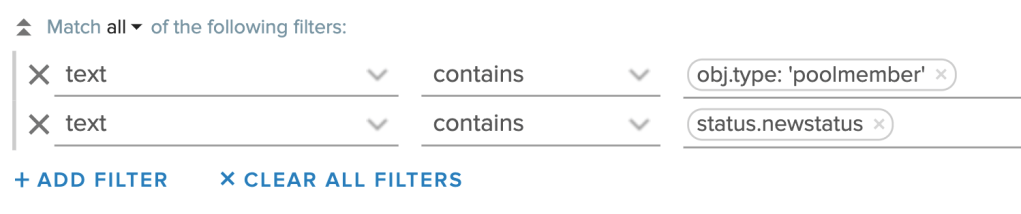 So in the case of the load balancer server pool member status I create a Log Insight query that is looking for events containing the text obj.type: ‘poolmember’ and status.newstatus: