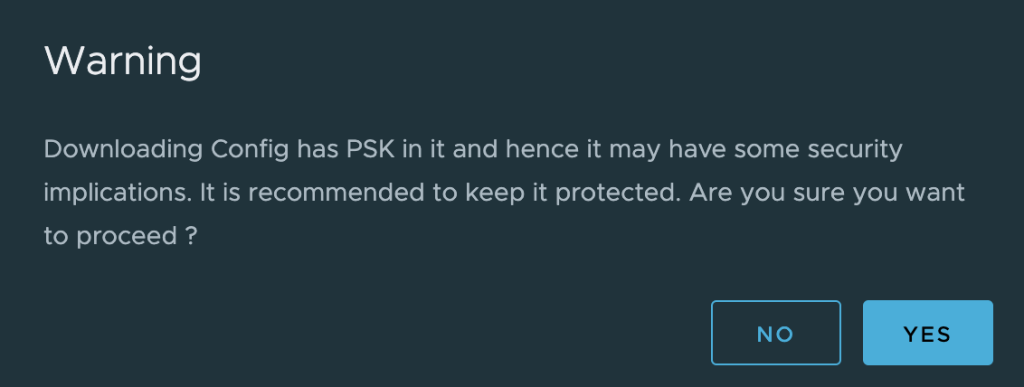 Once the L2 VPN session has been saved we can download the remote side VPN configuration which is needed on the NSX Autonomous Edge in the customer environment: