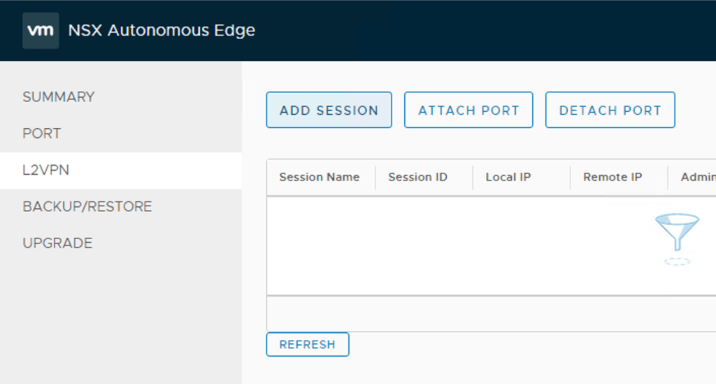 After logging in to the NSX Autonomous Edge UI we click L2VPN > Add Session