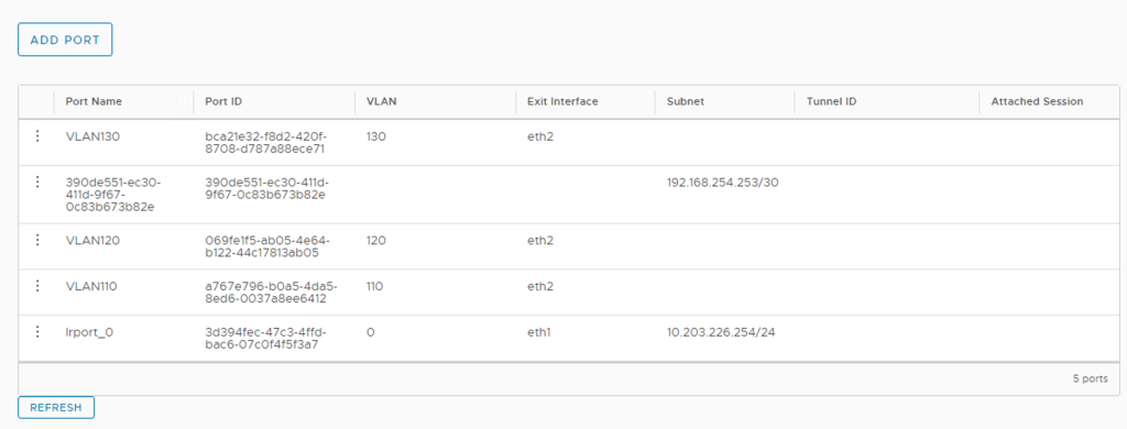 The NSX Edge UI once the ports have been added:
