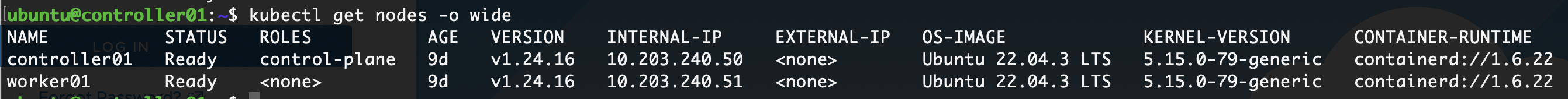 As we’re running a single control plane node (controller01) we should make the following adjustments to the CSI deployment. From the Control node:
