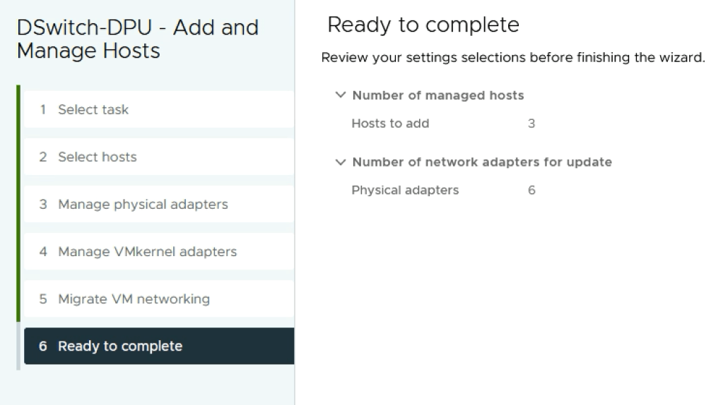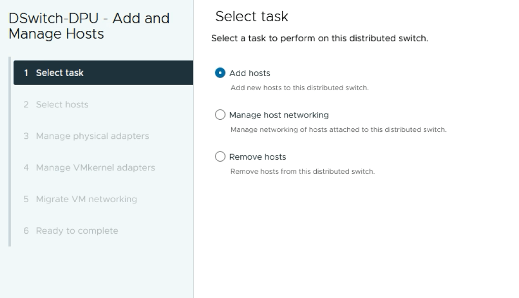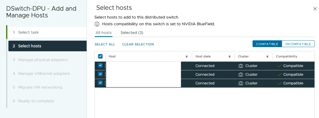 Next we add the ESXi hosts to the DPU compatible VDS.