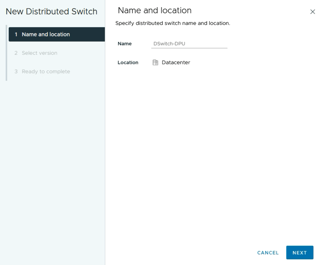 The first thing we need to do is create a vSphere Distributed Switch (VDS) that supports network offloads to DPU.